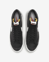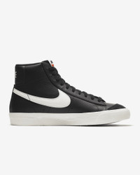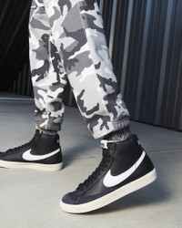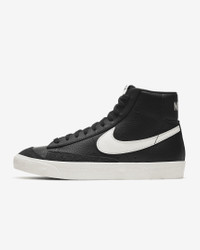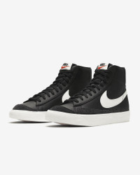 In the ‘70s, Nike was the new shoe on the block. So new in fact, we were still breaking into the basketball scene and testing prototypes on the feet of our local team. Of course, the design improved over the years, but the name stuck. The Nike Blazer Mid ’77 Vintage—classic since the beginning. Benefits - Leather and synthetic upper keeps the classic look of the original while adding comfort and support. - Vintage treatment on the midsole provides an old-school look. - Autoclave construction fuses the outsole to the midsole for a streamlined look that echoes the ‘70s design. - Exposed foam on the tongue provides a throwback look. - Non-marking, solid-rubber outsole has had the same herringbone pattern from the start, because why change what works. It’s excellent traction and durability that leaves the imprint you love. Product Details - Shown: Black/Sail/Sail - Style: BQ6806-002 SIZE & FIT For easier entry, we recommend unlacing the top 4 eyelets and sghtly loosening the laces farther down