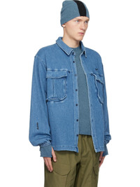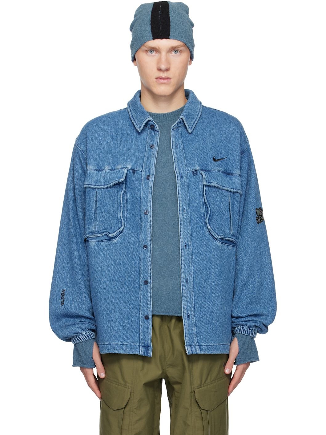 Non-stretch denim shirt. Fading throughout. · Spread collar · Button closure · Flap and zip pockets · D-ring at front pocket · Tennis-tail hem · Rubberized logo patch at sleeve · Logo embroidered at sleeve and back hem · Elasticized cuffs · Storm flap at back Part of the Nike x NOCTA collaboration. Please note that this item may be shipped only within North America. Supplier color: French Blue
