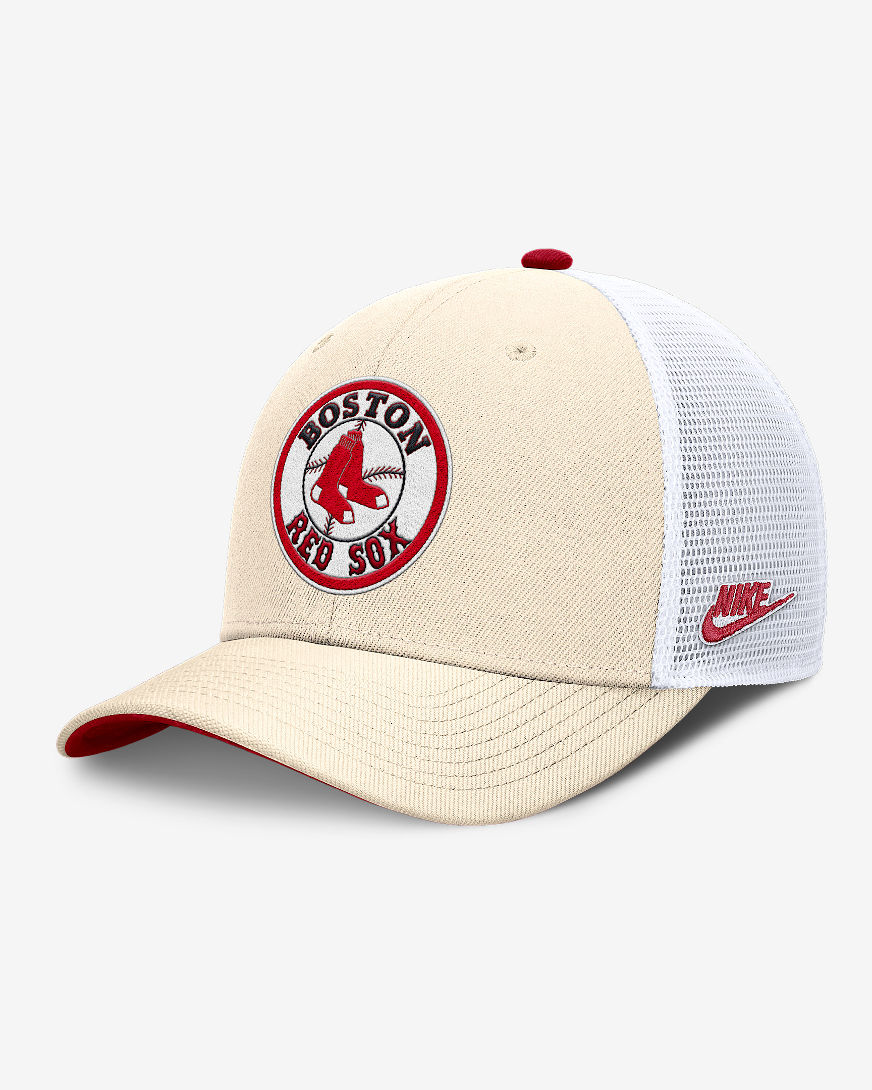 Featuring a curved bill and 2-tone design, this Cooperstown Rise Trucker Hat brings back a throwback Boston Red Sox look with an embroidered vintage team logo. Its sweat-wicking technology and four mesh panels help provide a breathable, comfortable feel. Benefits - Nike Dri-FIT technology moves sweat away from your skin for quicker evaporation, helping you stay dry and comfortable. - Snapback closure provides a customizable fit. Product Details - 6-panel design - Embroidered eyelets - Hand wash - Imported - 100% polyester - Shown: Natural - Style: NB040GAGBRS-77Q