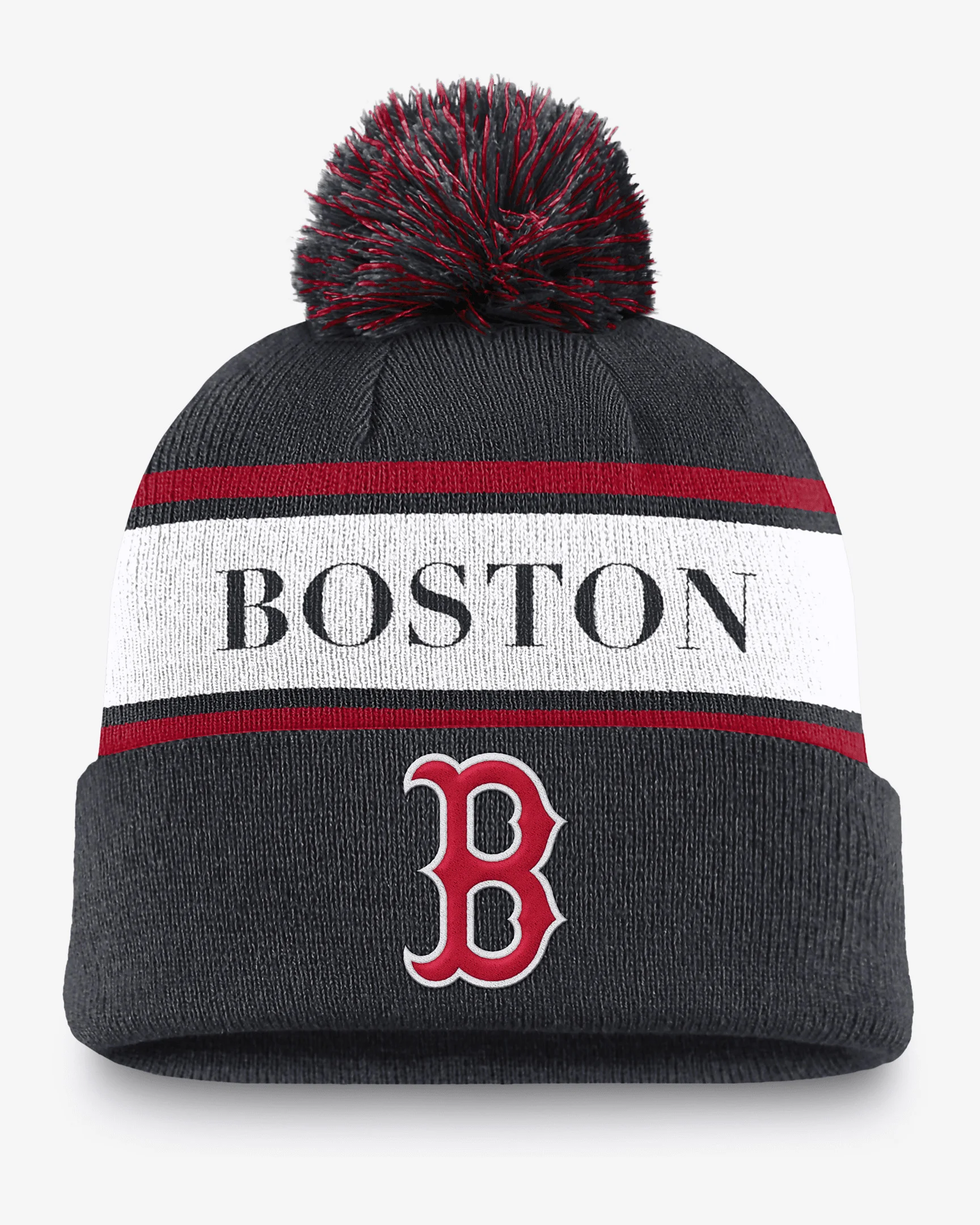 Boston Red Sox Team Stripe Peak Men's Nike MLB Cuffed Pom Beanie