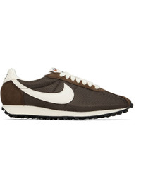Low-top mesh and suede sneakers. · Lace-up closure · Logo patch at padded tongue · Padded collar · Swoosh applique at sides · Logo printed at heel tab · Fleece lining · Foam rubber midsole · Treaded rubber sole Please note that this item may be shipped only within North America. Supplier color: Baroque brown/Black/Soft pearl Upper: textile, leather. Sole: rubber. Made in Indonesia 261011M237055