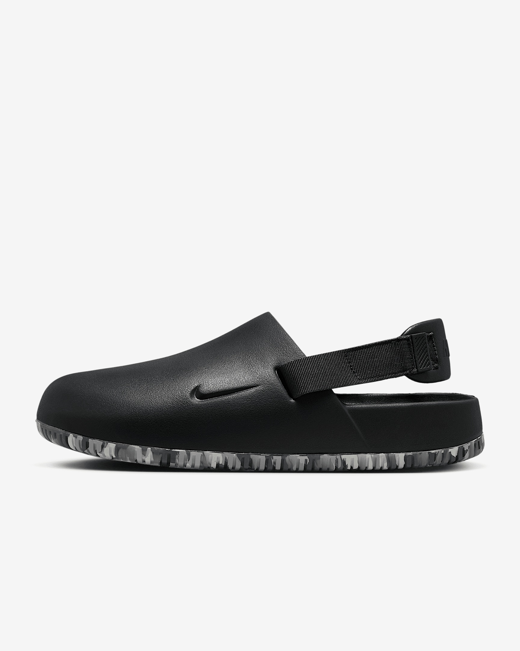 Enjoy a calm, comfortable experience—no matter where your day off takes you. Made with soft yet supportive foam, the minimal design makes these mules easy to style with or without socks. And the heel strap is both adjustable and removable to give you a personalized fit. Benefits - Contoured design is made from a single piece of foam for a smooth, seamless feel. - Subtle texture pattern on the footbed adds grip even when wet. - Side cutout adds just the right amount of breathability. - Outer shell is made from water-friendly foam that is easy to clean. - Rubber outsole gives you excellent traction even on slippery surfaces. Product Details - Removable heel strap - Shown: Dark Smoke Grey/Cement Grey/Vast Grey/Dark Smoke Grey - Style: FD5130-006