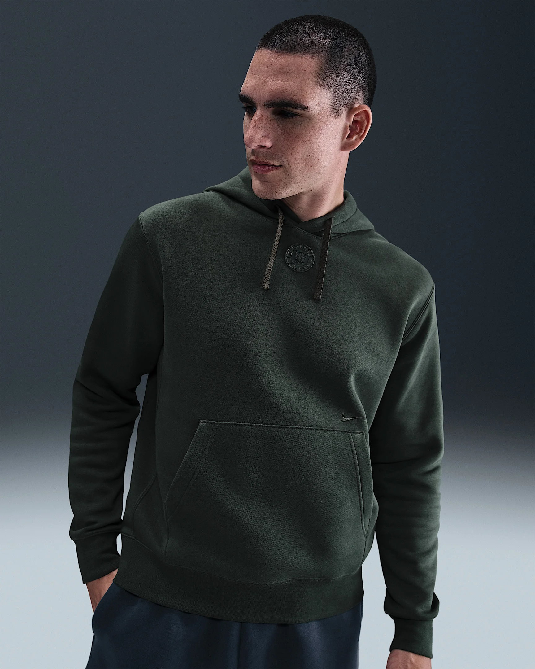 Never let the cold be the reason you aren't repping Chelsea. Our midweight brushed fleece feels extra soft on the inside and smooth on the outside, helping you stay cozy while keeping its structured shape. Product Details - Front pocket - Body: 80% cotton/20% polyester. Hood lining: 100% cotton. - Machine wash - Imported - Shown: Outdoor Green/Outdoor Green - Style: HM2870-346 SIZE & FIT Model is wearing size M and is 6′2″188cm Standard fit: easy and traditional