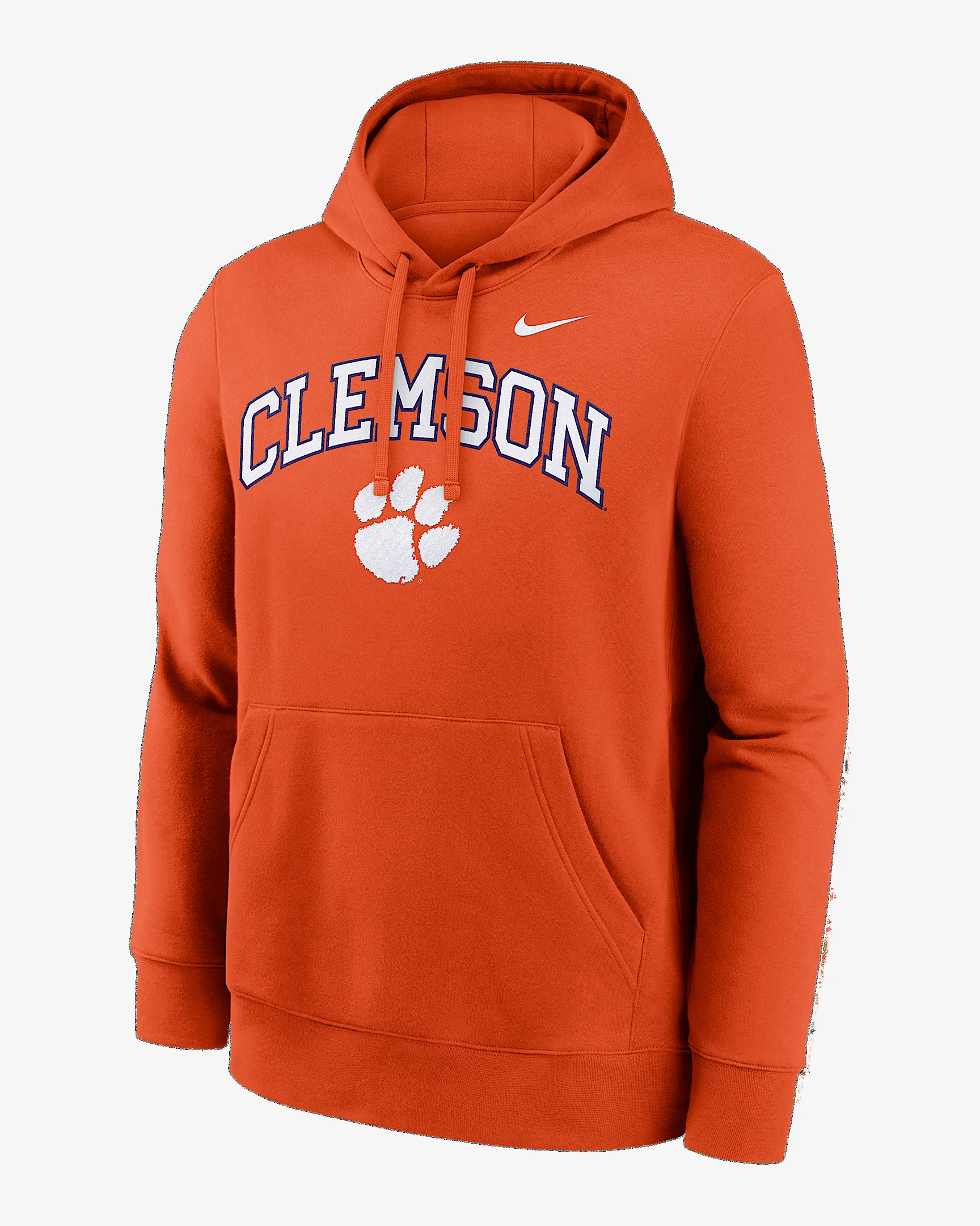 Featuring bold team graphics, this Arch Hoodie is made with cozy fleece fabric and a brushed French terry lining to help you comfortably support Clemson in chilly temperatures. Product Details - Front pocket - Hood with adjustable drawstring - 82% cotton/18% polyester - Machine wash - Imported - Shown: Orange - Style: NKDK89MCLN-Y48