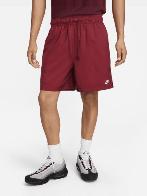 Sporty and versatile, these woven shorts are made for easygoing daily comfort. The fit is designed to hit above-the-knee and feel relaxed through the seat and thighs to keep them from feeling restrictive, especially in warmer weather. Mesh lining helps you stay cool and comfy around town. Pair them up with a tee and your favorite Nike sneakers for a look that gets you out there looking and feeling great. Benefits - Lightweight woven fabric feels smooth and crisp. - Cool mesh lining provides breathable, air-cooled comfort. - Designed to hit above the knee, these relaxed-fitting shorts give you a bit of room through the seat and thighs. - Soft elastic waistband with outer drawcord helps you find a comfy, secure fit. Product Details - 6" inseam - Hand pockets - Back pocket with hook-and-loop closure - Embroidered Nike Futura logo at left thigh - Side vents - 100% polyester - Machine wash - Imported - Shown: Burgundy Crush/White - Style: FN3307-652 SIZE & FIT Model is wearing size M and is 6′0″183cm Big & Tall model is wearing size 3XL and is 6'3"191cm Standard fit: easy and traditional Fits large; we recommend ordering a size down