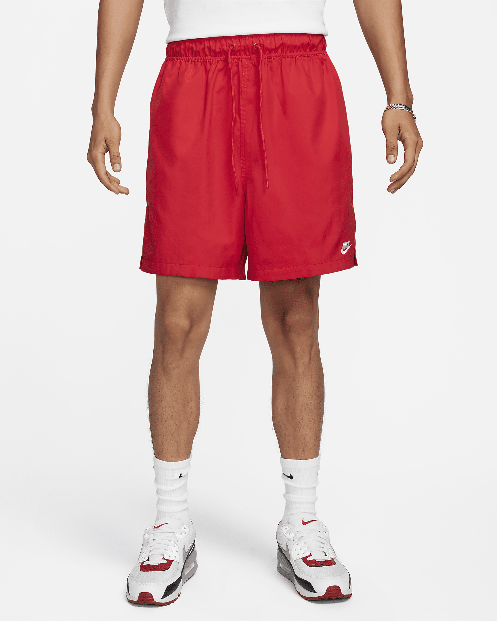 Sporty and versatile, these woven shorts are made for easygoing daily comfort. The fit is designed to hit above-the-knee and feel relaxed through the seat and thighs to keep them from feeling restrictive, especially in warmer weather. Mesh lining helps you stay cool and comfy around town. Pair them up with a tee and your favorite Nike sneakers for a look that gets you out there looking and feeling great. Benefits - Lightweight woven fabric feels smooth and crisp. - Cool mesh lining provides breathable, air-cooled comfort. - Designed to hit above the knee, these relaxed-fitting shorts give you a bit of room through the seat and thighs. - Soft elastic waistband with outer drawcord helps you find a comfy, secure fit. Product Details - 6" inseam - Hand pockets - Back pocket with hook-and-loop closure - Embroidered Nike Futura logo at left thigh - Side vents - 100% polyester - Machine wash - Imported - Shown: University Red/White - Style: FN3307-657 SIZE & FIT Big & Tall model is wearing size 3XL and is 6'1"185cm Big & Tall model is wearing size 3XL and is 6'1"185cm Standard fit: easy and traditional Fits large; we recommend ordering a size down