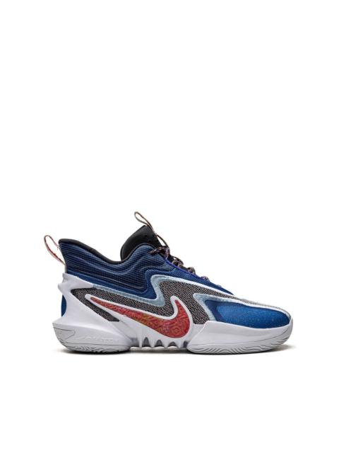 Cosmic Unity 2 sneakers Nike's Cosmic Unity 2 now appears in a mix of Off Noir, Blue, Multi-Color, and Black colour tones. This model features sharper lines throughout its upper - made of recycled yarn - and sits atop a full-length Air Zoom Strobel unit and a rubber outsole with symmetrical patterns. Highlights - Blue/black/white/orange - Signature swoosh logo detail - Contrasting panel detail - Round toe - Front lace-up fastening - Double pull-tab at the opening - Branded insole - Rubber sole - These styles are supplied by a premium sneaker marketplace. stocking only the most sought-after footwear, they source and curate some of the most hard to find sneakers from around the world. Imported Composition Other fibres 100%