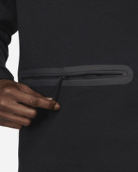 Ready for a night on the town or an evening in, this sleek sweatshirt injects a dose of polished comfort into your daily wardrobe. Our premium, smooth-on-both-sides fleece feels warmer and softer than ever, while keeping the same lightweight build you love. The relaxed fit lets you throw it on over a tee and under a jacket when the conditions call for it. Benefits - Designed to feel relaxed through the shoulders, chest and body for an athletic fit you can layer. - Zippered closure and front pocket feature a taped surround for reinforcement and that signature Tech Fleece DNA. - Paneled construction through the sleeves and body adds mobility and comfort while you move. Product Details - Thin elastic cuffs - Stand collar - Nike Futura logo at left cuff - Body: 53% cotton/47% polyester. Pocket Bag Palm Side: 69% cotton/31% polyester. Pocket Bag Knuckle Side: 100% cotton. - Machine wash - Imported - Shown: Black/Black - Style: FB7998-010 SIZE & FIT Model is wearing size M and is 6′3″189cm Standard fit: easy and traditional If you typically wear men's styles, please select your usual size. If you typically wear women's styles, please size down.