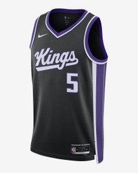 Every team has its true colors, an unmistakable identity that sets it apart from the rest of the league. Honoring a rich hoops heritage, this Sacramento Kings jersey is inspired by what the pros wear on the hardwood, from squad details to lightweight, sweat-wicking mesh. It helps keep you dry and cool on or off the court while you rep your favorite player and the game you love. Benefits - Nike Dri-FIT technology moves sweat away from your skin for quicker evaporation, helping you stay dry and comfortable. - Breathable mesh helps keep you cool on or off the court. - Replica design gives you details modeled after what the pros wear. Product Details - Twill player name and number - Jock tag at hem - Heat-applied graphics - 100% polyester - Machine wash - Imported - Shown: Black - Style: DX8621-010 SIZE & FIT Standard fit: easy and traditional If you typically wear men's styles, please select your usual size. If you typically wear women's styles, please size down.