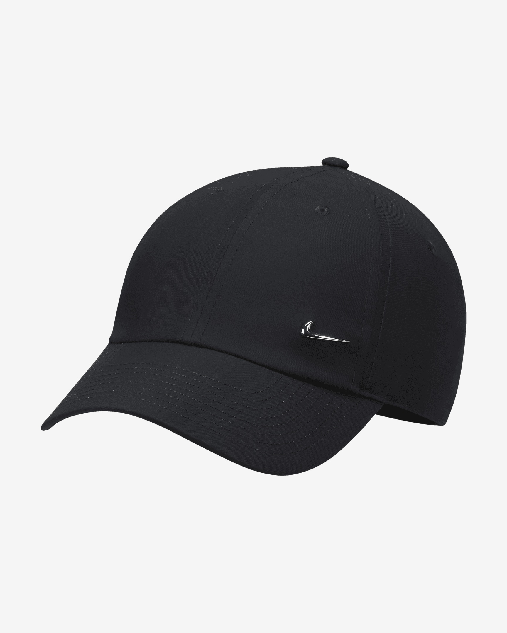 Step up your Swoosh game with this mid-depth, unstructured Club Cap. Its curved bill and metal Swoosh logo give your look a clean finish while sweat-wicking fabric helps you stay cool and comfortable while you make the most of warm, sunny weather. Benefits - Club caps all have any-day style with mid-depth height. - Nike Dri-FIT technology moves sweat away from your skin for quicker evaporation, helping you stay dry and comfortable. - Twill fabric has a lightweight, smooth feel. - Swoosh-branded metal clamp lets you adjust your fit with ease. Product Details - 100% polyester - Metal Swoosh Ingot logo - Adjustable metal clamp closure with Embossed Swoosh - Hand wash - Imported - Shown: Black/Metallic Silver - Style: FB5372-010