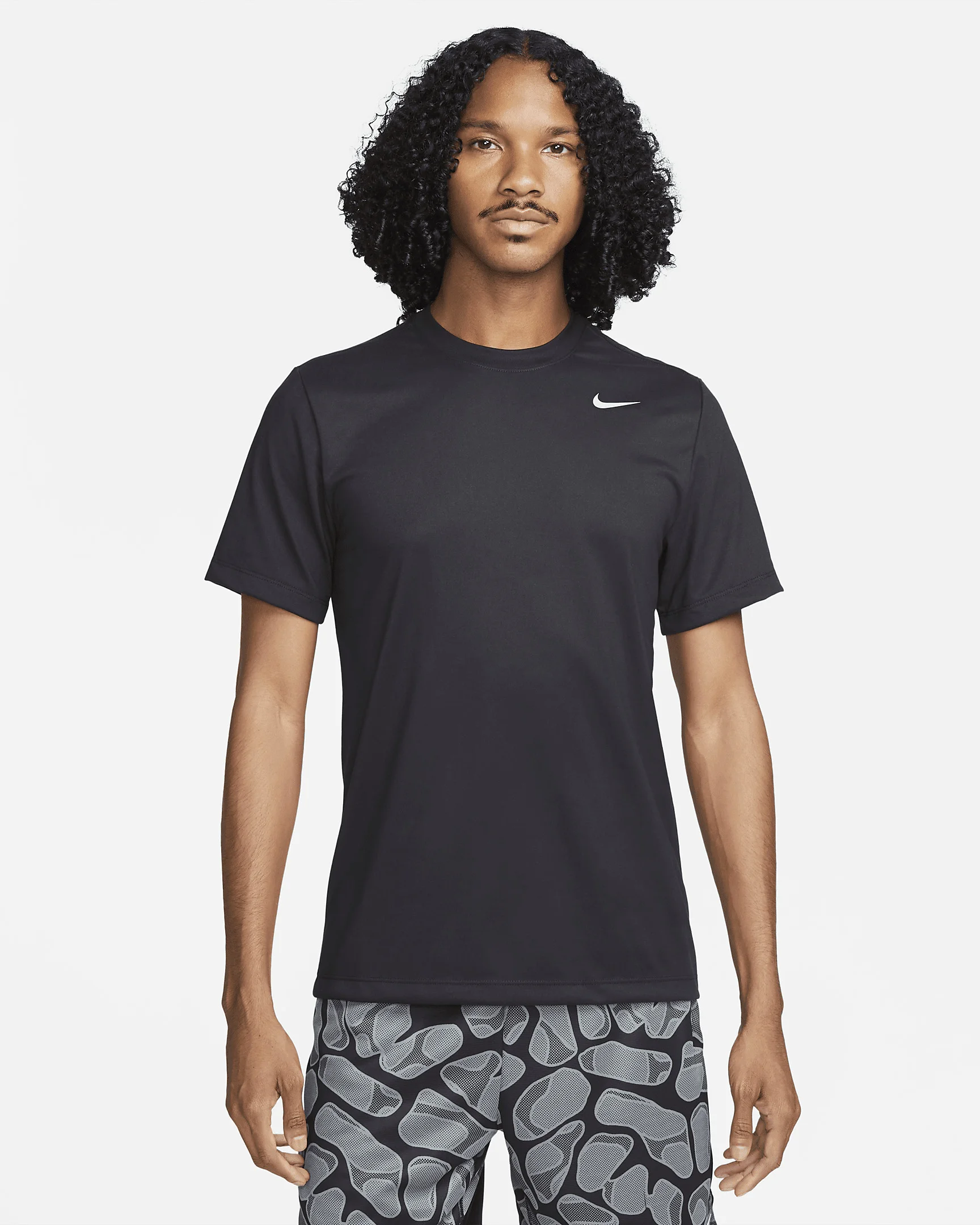 Updating the Legend T-shirt, this sweat-wicking tee is soft in all the right ways. We also cut it with a more relaxed, looser fit than previous versions so you can move through your reps without missing a beat. Benefits - Nike Dri-FIT technology moves sweat away from your skin for quicker evaporation, helping you stay dry and comfortable. - Jersey fabric feels soft and smooth. - Updated for a more relaxed feel that is slightly looser through the chest, waist and hips than previous versions. Product Details - Standard fit for a relaxed, easy feel - Ribbed neckband - 100% polyester - Machine wash - Imported - Shown: Black/Matte Silver - Style: DX0989-010 SIZE & FIT Model is wearing size M and is 6'2"188cm Big & Tall model is wearing size 2XL and is 6'6"197cm Standard fit: easy and traditional