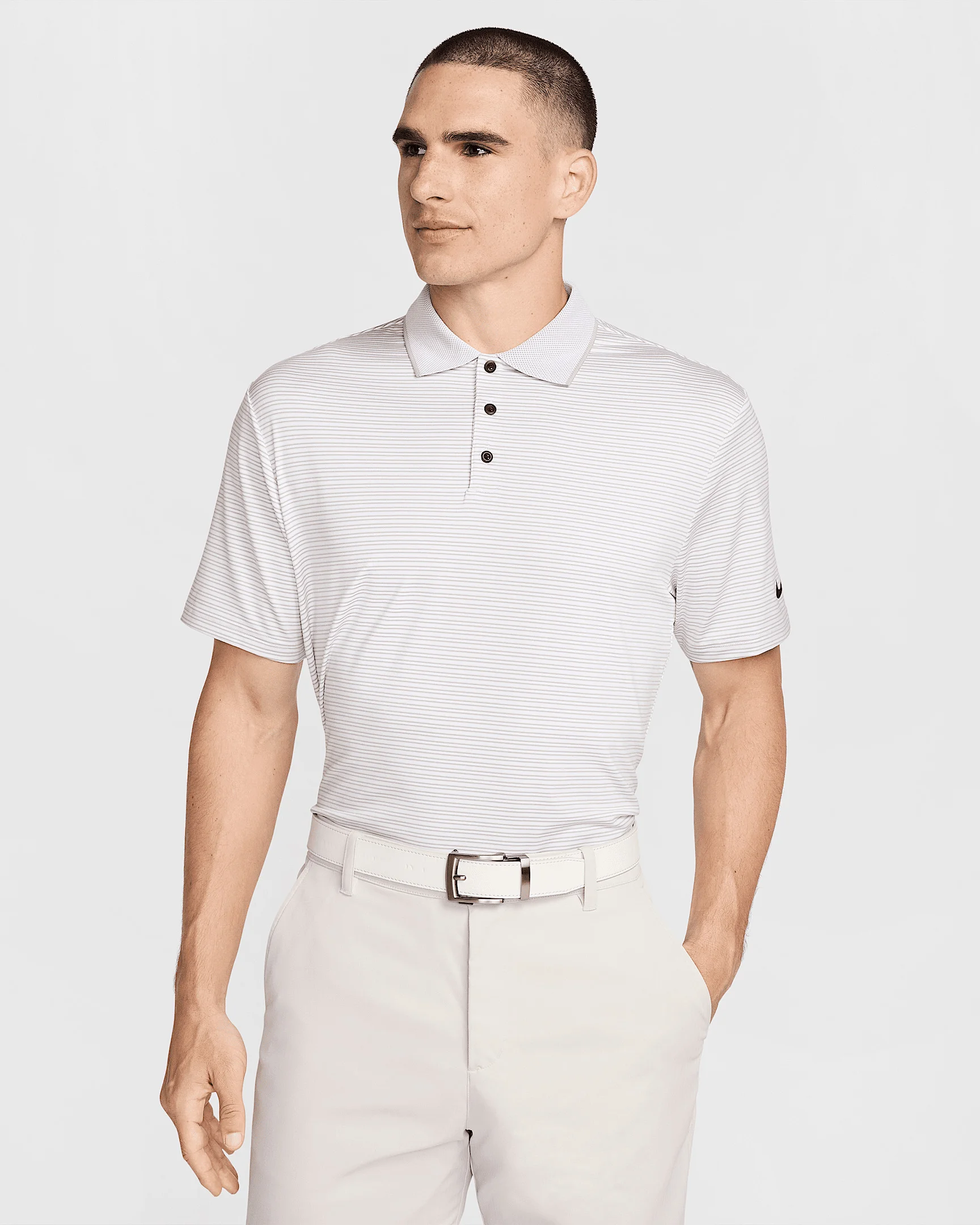 The Tour Polo is all about consistent performance. Lightweight and breathable, its four-way stretch-knit fabric lets you easily flow through your swing. The three-button placket, stand collar and classic fit bring a polished polo look. Benefits - Nike Dri-FIT technology moves sweat away from your skin for quicker evaporation, helping you stay dry and comfortable. - Soft stretch-knit material is lightweight and breathable. - Classic three-button placket lets you customize your style and coverage. Product Details - Swoosh logo graphics on sleeve and back neck - 96% polyester/4% spandex - Machine wash - Imported - Shown: White/Black - Style: FZ7479-100 SIZE & FIT Model is wearing size M and is 6′2″188cm Standard fit: easy and traditional