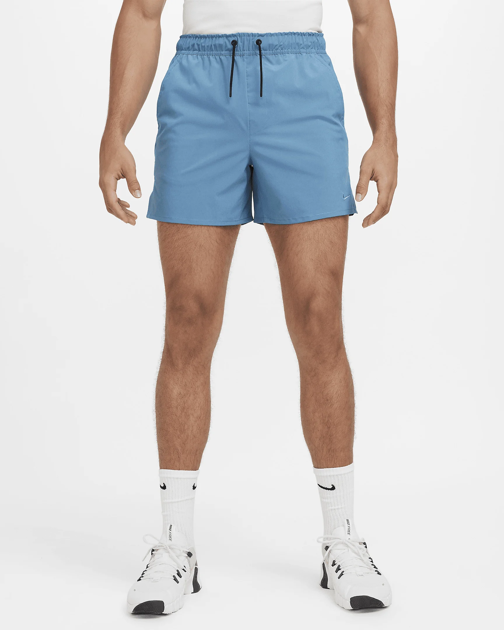 Designed for running, training and yoga, our sweat-wicking Unlimited Shorts were made to do it all. They're here for whatever your workout requires, with stretchy fabric that helps you stay free to move. Plus, a hidden pocket lets you keep your phone close as you bring the heat to the gym or a run. More Benefits - Designed for Running, Yoga and Training - Length: 5" - Liner: Unlined - Fabric: 4-way stretch woven - Storage: Side pockets and hidden back pocket - Waistband: Stay-in-place waistband with convertible interior/exterior drawcord Product Details - Interior key loop - Faux fly - Embroidered Swoosh - Body: 86% polyester/14% spandex. Mesh: 100% polyester. - Machine wash - Imported - Shown: Aegean Storm/Black/Aegean Storm - Style: DV9336-429 SIZE & FIT Standard fit: easy and traditional