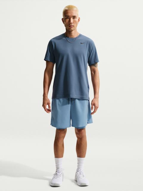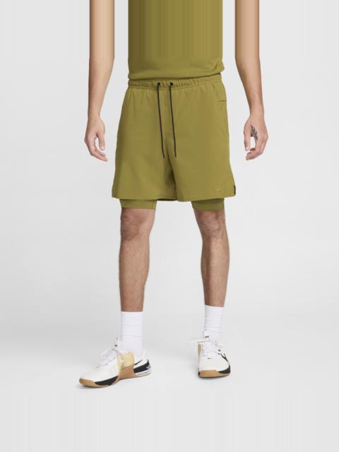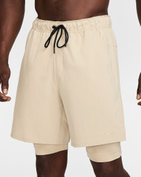 Designed for running, training and yoga, our sweat-wicking Unlimited Shorts were made to do it all. They're here for whatever your workout requires, with a smooth, stretchy outer layer that helps you stay free to move. A tight inner layer adds extra support during your routine. Plus, a hidden pocket lets you keep your phone close as you bring the heat to the gym or a run. More Benefits - Designed for Running, Yoga and Training - Length: 7" - Liner: 2-in-1 - Fabric: 4-way stretch woven - Storage: Side pockets, hidden back pocket and drop-in phone pocket - Waistband: Stay-in-place waistband with convertible interior/exterior drawcord Product Details - Interior key loop - Faux fly - Embroidered Swoosh - Body: 86% polyester/14% spandex. Panels: 89% polyester/11% spandex. Pocket Bags: 100% polyester. - Machine wash - Imported - Shown: Desert Khaki/Desert Khaki/Black/Desert Khaki - Style: DV9334-251 SIZE & FIT Model is wearing size M and is 5′10″178cm Standard fit: easy and traditional