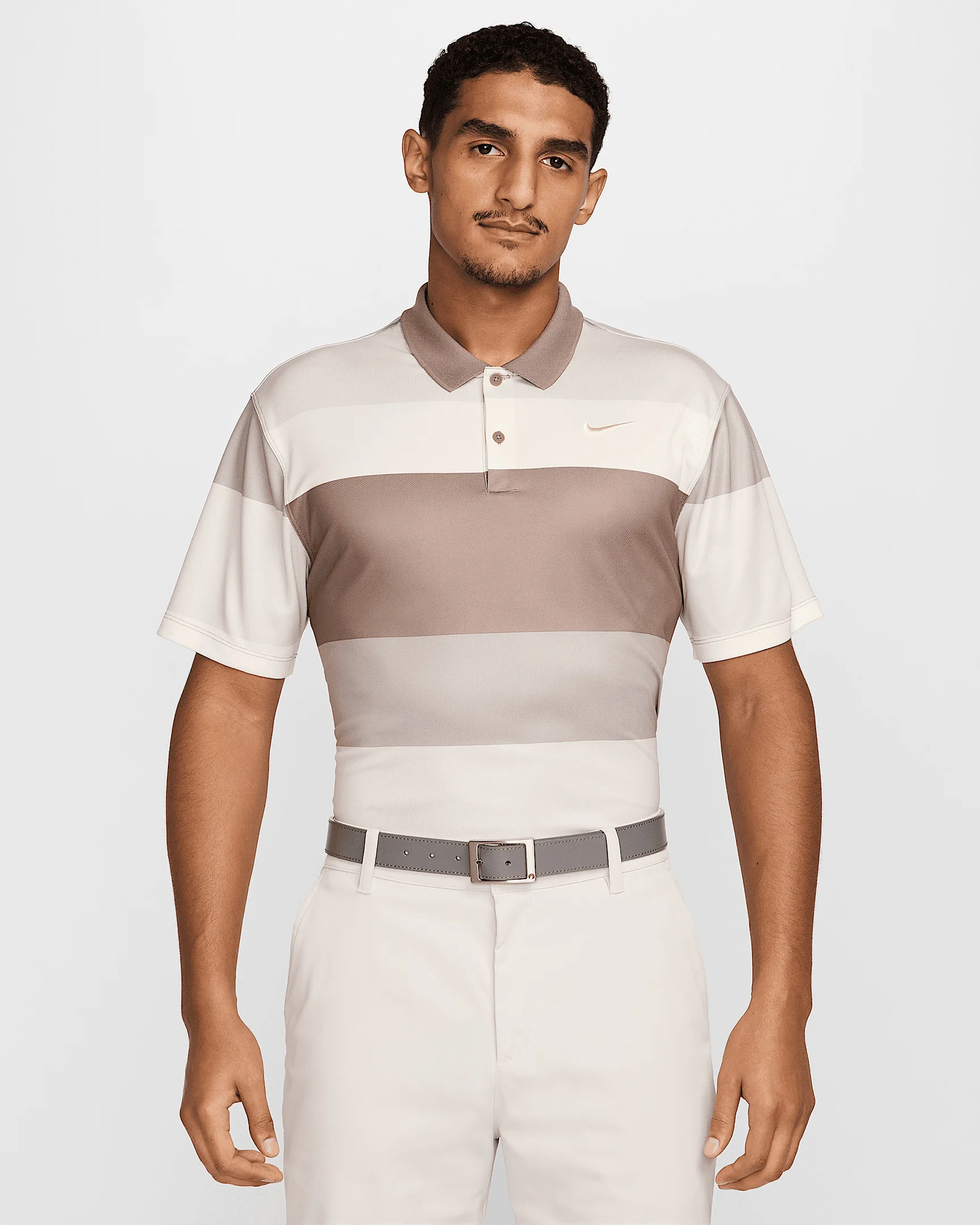 Tailored for golf, the Victory+ polo is designed to help you focus on perfecting your game. Its lightweight, sweat-wicking Dri-FIT fabric deals with perspiration so you don't have to. The shaped collar, 2-button placket and classic fit offer a classic look for the links. Benefits - Nike Dri-FIT technology moves sweat away from your skin for quicker evaporation, helping you stay dry and comfortable. - Soft knit material feels lightweight and breathable. Product Details - Embroidered Swoosh logo on chest - Ribbed collar - 100% polyester - Machine wash - Imported - Shown: Mink Brown/Pale Ivory - Style: FZ7448-233 SIZE & FIT Model is wearing size M and is 6′2″188cm Standard fit: easy and traditional
