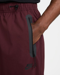 Crafted with stretchy woven material, these Nike Tech pants offer you ease of movement and adjustability. The wide-leg cut is paired with bungee locks at the ankles that let you switch up the fit. Benefits - Lightweight fabric moves sweat away from your skin for quick evaporation, helping you stay dry and comfortable. - Oversized fit offers plenty of space through the thighs and legs. - Articulated knees are made with movement in mind, and add a distinct Nike Tech aesthetic. - Stretchy elastic waistband with bungee drawcord provides a custom fit. Product Details - Nike Futura logo - Extralong taped Tech pocket - Hand pocket on the left - Body: 94% nylon/6% spandex. Pocket Bags: 100% polyester. - Machine wash - Imported - Shown: Burgundy Crush/Burgundy Crush/Black - Style: HM7158-652 SIZE & FIT Model is wearing size M and is 6′0″183cm Oversized fit: exaggerated and spacious 78 length: hits at ankle