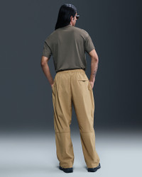Crafted with stretchy woven material, these Nike Tech pants offer you ease of movement and adjustability. The wide-leg cut is paired with bungee locks at the ankles that let you switch up the fit. Benefits - Lightweight fabric moves sweat away from your skin for quick evaporation, helping you stay dry and comfortable. - Oversized fit offers plenty of space through the thighs and legs. - Articulated knees are made with movement in mind, and add a distinct Nike Tech aesthetic. - Stretchy elastic waistband with bungee drawcord provides a custom fit. Product Details - Nike Futura logo - Extralong taped Tech pocket - Hand pocket on the left - Body: 94% nylon/6% spandex. Pocket Bags: 100% polyester. - Machine wash - Imported - Shown: Parachute Beige/Parachute Beige/Black - Style: HM7158-297 SIZE & FIT Model is wearing size M and is 6′0″183cm Oversized fit: exaggerated and spacious 78 length: hits at ankle