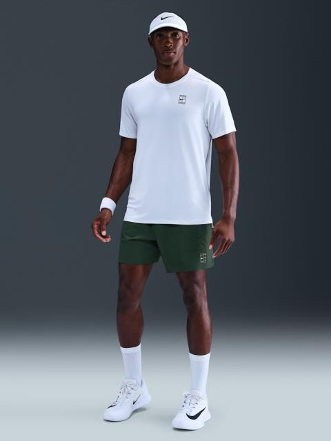 The 6" Advantage shorts are all about letting you play hard without having your clothing become a distraction. They're made from lightweight and breathable four-way stretch material. Special pockets that securely store tennis balls during play. Benefits - Nike Dri-FIT technology moves sweat away from your skin for quicker evaporation, helping you stay dry and comfortable. - Stretchy woven material feels lightweight and breathable. - Specially designed pockets let you stow tennis balls quickly and securely. - Soft elastic waistband with drawcord provides a secure fit. - Smooth hem finishes help to minimize chafing and distractions. Product Details - 6" inseam - Side vents - NikeCourt logo - Body: 89% polyester/11% spandex. Pocket bag palm side: 100% polyester. - Machine wash - Imported - Shown: Armory Navy/White - Style: FZ6913-478 SIZE & FIT Model is wearing size M and is 6′0″183cm Standard fit: easy and traditional