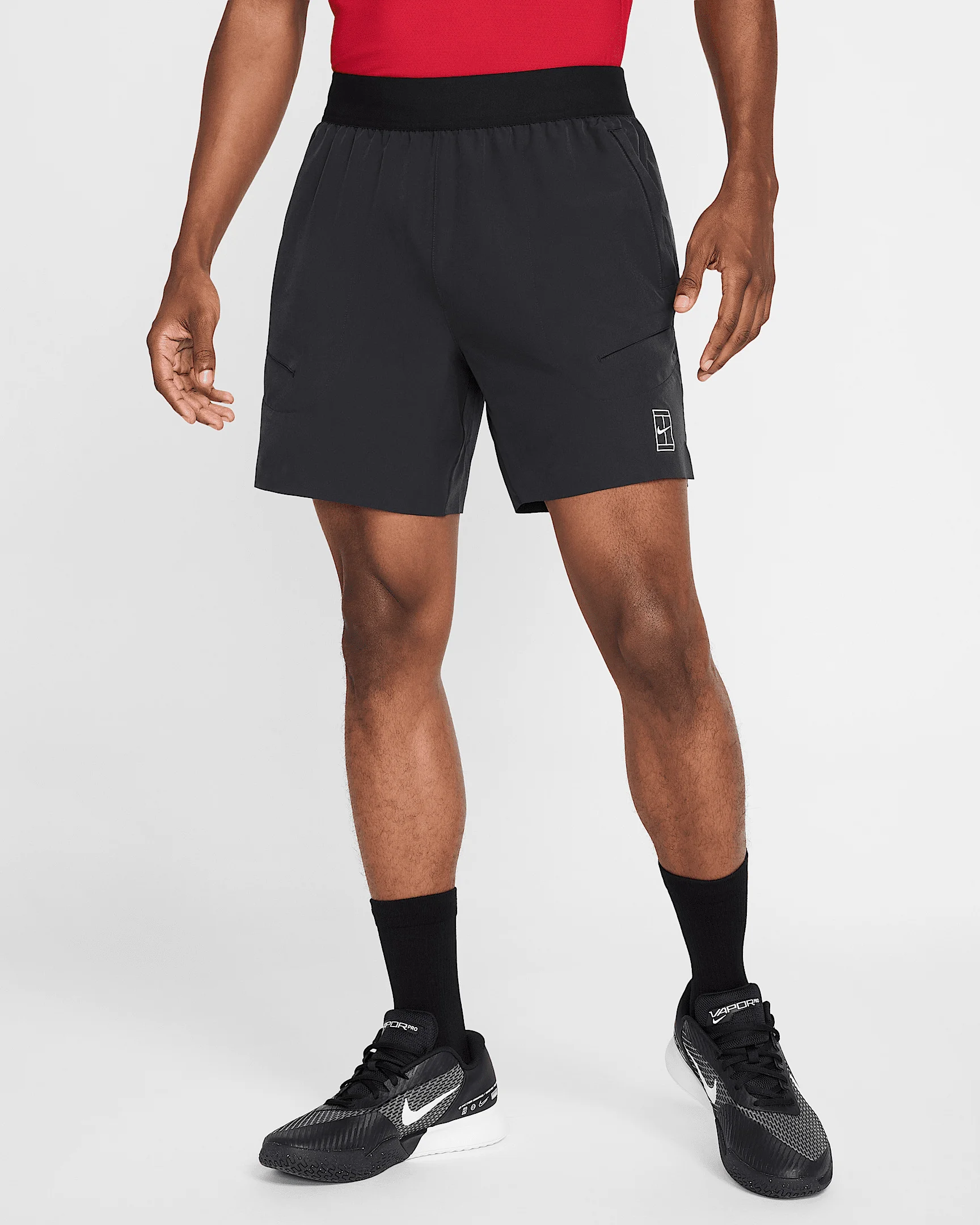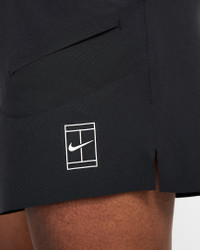 The 6" Advantage shorts are all about letting you play hard without having your clothing become a distraction. They're made from lightweight and breathable four-way stretch material. Special pockets that securely store tennis balls during play. Benefits - Nike Dri-FIT technology moves sweat away from your skin for quicker evaporation, helping you stay dry and comfortable. - Stretchy woven material feels lightweight and breathable. - Specially designed pockets let you stow tennis balls quickly and securely. - Soft elastic waistband with drawcord provides a secure fit. - Smooth hem finishes help to minimize chafing and distractions. Product Details - 6" inseam - Side vents - NikeCourt logo - Body: 89% polyester/11% spandex. Pocket bag palm side: 100% polyester. - Machine wash - Imported - Shown: Black/White - Style: FZ6913-010 SIZE & FIT Model is wearing size M and is 6′1″185cm Standard fit: easy and traditional