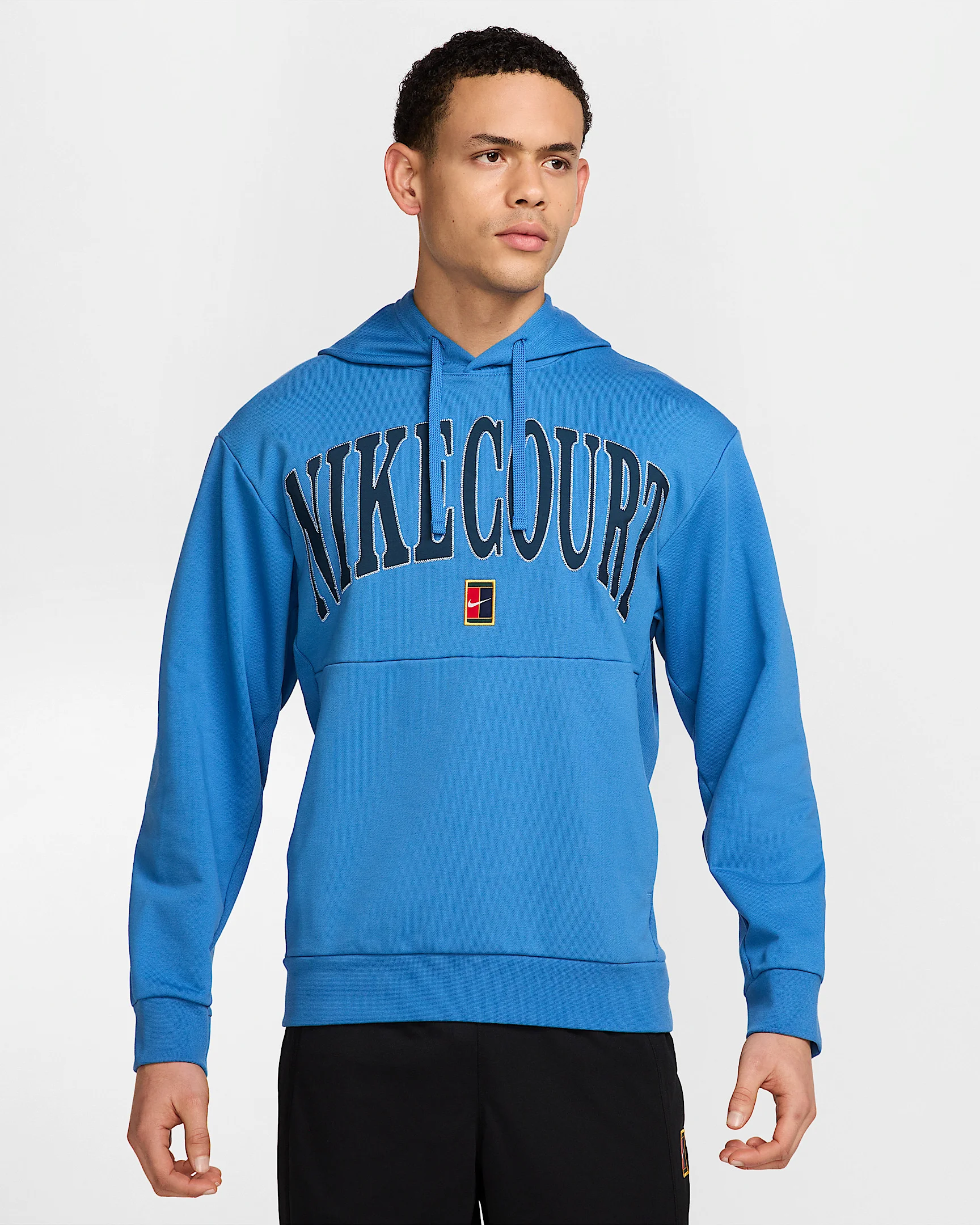 With a classic fit and soft, moisture-wicking fabric, this NikeCourt hoodie is ideal for sweating out close matches on the court or in the stands. Benefits - Nike Dri-FIT technology moves sweat away from your skin for quicker evaporation, helping you stay dry and comfortable. - Add some structure to your life with our heavyweight French terry. Densely knit, with unbrushed loops on the inside, the thick fabric helps keep you warm and comfortable. Product Details - Ribbed side panels, cuffs and hem - Drawcord at hood - Body: 59% cotton/41% polyester. Rib: 98% cotton/2% spandex; Mesh: 100% polyester. - Machine wash - Imported - Shown: Star Blue/Armory Navy/Psychic Blue - Style: FQ2093-402 SIZE & FIT Model is wearing size M and is 6′1″185cm Loose fit: roomy and relaxed
