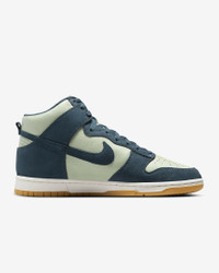 You can always count on a classic. The Dunk High pairs iconic color blocking with premium materials and plush padding for game-changing comfort that lasts. The possibilities are endless—how will you wear your Dunks? Benefits - Upper softens and gains vintage character with wear. - High-top collar, tongue shape and perforations on the toe box add an iconic look that stays true to the original. - Rubber sole has a full cupsole stitch for exceptional durability. - Rubber outsole with classic pivot circle adds durable traction and heritage style. Product Details - Foam midsole - Rubber outsole - Shown: Jade Horizon/Phantom/Gum Yellow/Armory Navy - Style: FZ4739-300