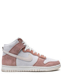 Dunk High sneakers A classic silhouette, Nike's Dunk High is presented here in an 'Aura' and 'Fossil Rose-Aura-Summit White' colourway. This allows the signature Swoosh logo - a motif designed to represent movement and speed - to stand out at the side. Imported Composition Suede 100%