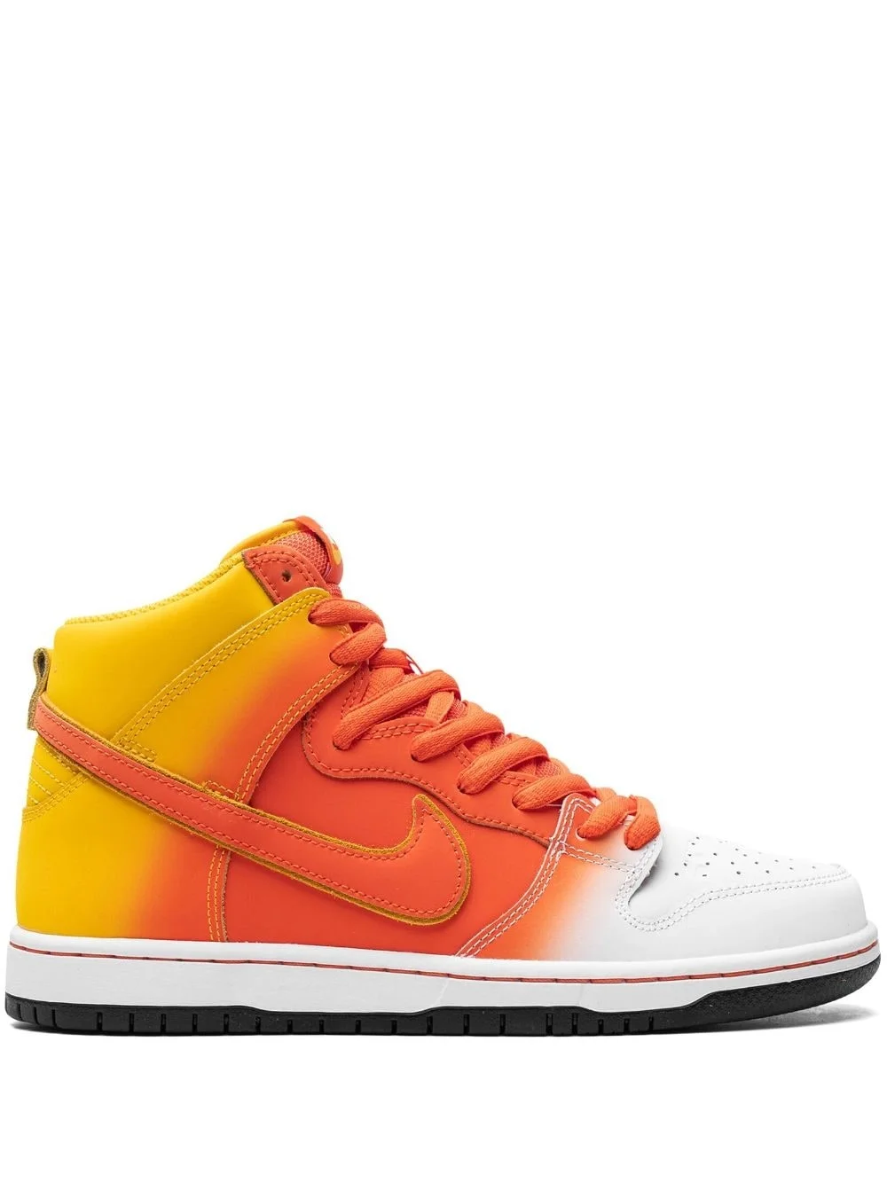 Dunk High "Sweet Tooth" sneakers In celebration of Halloween, Nike's Dunk High "Sweet Tooth" sneakers are presented in a colourway inspired by candy corn. The toe is crafted from white leather, while an orange hue takes the focus of the mid-panel before fading into yellow at the heel and collar. Highlights - Orange/white/yellow - Leather - Signature swoosh logo detail - Perforated toebox - Round toe - Front lace-up fastening - Logo patch at the tongue - Pull-tab at the heel - These styles are supplied by a premium sneaker marketplace. stocking only the most sought-after footwear, they source and curate some of the most hard to find sneakers from around the world. - Flat rubber sole Imported Composition Leather 100%
