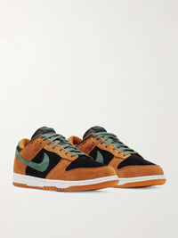 The 'Ceramic' colourway of these Nike 'Dunk Low' sneakers is the final of three styles from its 'Ugly Duckling' pack re-released for 2020. Modelled after the original pair launched in 2001, they have black, orange and emerald suede uppers, mesh trims and complementing two-tone rubber soles. Size & Fit - US 5 = UK 4/EU 37.5 - US 5.5 = UK 4.5/EU 38 - US 6 = UK 5/EU 38.5 - US 6.5 = UK 5.5/EU 39 - US 7 = UK 6/EU 40 - US 7.5 = UK 6.5/EU 40.5 - US 8 = UK 7/EU 41 - US 8.5 = UK 7.5/EU 42 - US 9 = UK 8/EU 42.5 - US 9.5 = UK 8.5/EU 43 - US 10 = UK 9/EU 44 - US 10.5 = UK 9.5/EU 44.5 - US 11 = UK 10/EU 45 - US 11.5 = UK 10.5/EU 45.5 - US 12 = UK 11/EU 46 - US 12.5 = UK 11.5/EU 47 - US 13 = UK 12/EU 47.5 - US 13.5 = UK 12.5/EU 48 - US 14 = UK 13/EU 48.5 - Fits true to size, take your normal size Details & Care - Black, orange and emerald suede, charcoal mesh - Lace-up - Designer colour: Black/ Ceramic/ Nori - Style number: DA1469-001 - Nike follows its own size conversion, therefore the size stated on the box will differ from the one provided in our conversion chart. To receive your correct fit, please refer to Size and Fit notes