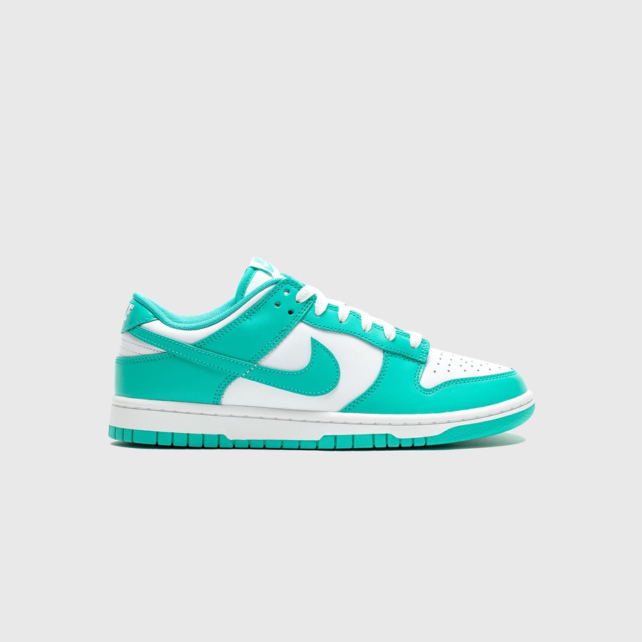 - DV0833 101 - White/Clear Jade-White - A brand new colorway of the iconic Dunk Low - Clear jade & White leather upper - White nylon canvas tongue with "NIKE SWOOSH" tongue tag - Clear jade leather swoosh - Clear jade leather heel cap with White "NIKE" embroidery - White rubber midsole - Clear jade rubber outsole - Classic flat laces