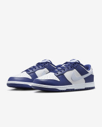 Recognizing the Dunk's roots as the top-ranking college team sneaker, the "Be True To Your School" pack looks to the original ad campaign for inspiration. Colors represent top-flight universities, while crisp leather has the perfect amount of sheen to make 'em a hands-down win. So lace up and show off that varsity spirit. Ya game? Benefits - Colors let you rep your favorite collegiate teams. - Leather upper ages to soft perfection. - Foam midsole offers lightweight, responsive cushioning. - Padded, low-cut collar looks sleek and feels great. - Rubber outsole with classic hoops pivot circle adds durable traction and heritage style. Product Details - Shown: Deep Royal Blue/White/Football Grey - Style: DV0833-401