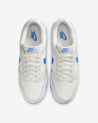Created for the hardwood but taken to the streets, the basketball icon returns with classic details and throwback hoops flair. Channeling '80s vibes, its padded, low-cut collar lets you take your game anywhere—in comfort. Benefits - Leather in the upper ages to soft perfection. - Foam midsole offers lightweight, responsive cushioning. - Rubber outsole with classic hoops pivot circle adds durable traction and heritage style. - Low-cut, padded collar looks sleek and feels great. - Shown: Summit White/Platinum Tint/White/Photo Blue - Style: DV0831-108
