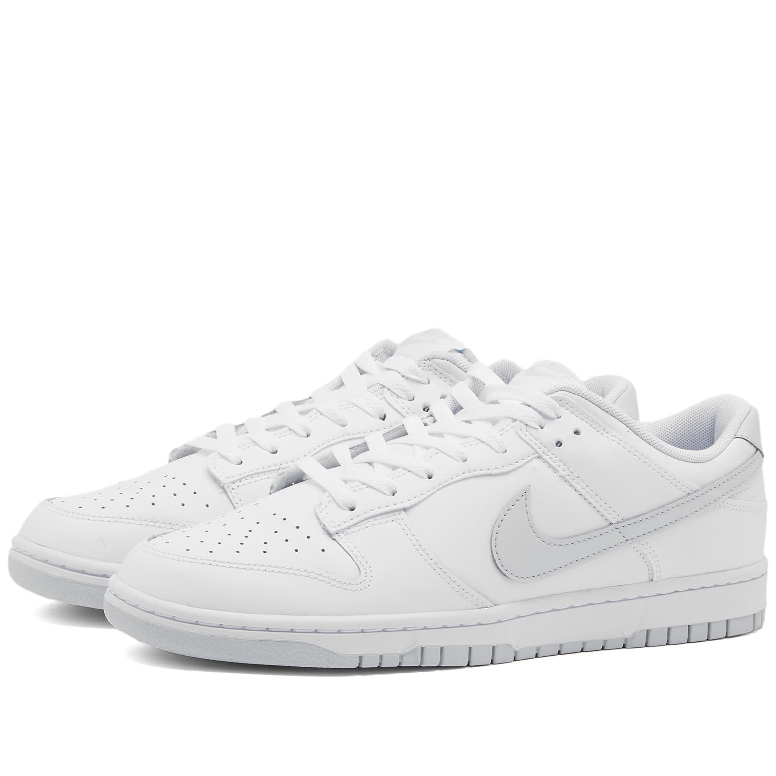 Nike continues to expand its Dunk Low range with this white and pure platinum version this season. They're formed with smooth white leather uppers and feature hints of light grey at the signature Swoosh logo at the side walls, the heel tab and underfoot at the rubber outsole. The pair's perforated toe box provides breathability while a full-length cushioned midsole beneath the feet ensures comfort with every step. This pair is a must-have for anyone's everyday line-up. - Leather Uppers - Rubber Outsole