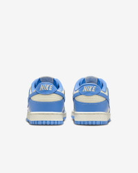 Recognizing the Dunk's roots as the top-ranking college team sneaker, the "Be True To Your School" pack looks to the original ad campaign for inspiration. Colors represent top-flight universities, while crisp leather has the perfect amount of sheen to make 'em a hands-down win. So lace up and show off that varsity spirit. Ya game? Benefits - Colors let you rep your favorite collegiate teams. - Leather upper ages to soft perfection. - Foam midsole offers lightweight, responsive cushioning. - Padded, low-cut collar looks sleek and feels great. - Rubber outsole with classic hoops pivot circle adds durable traction and heritage style. Product Details - Shown: Coconut Milk/Gym Red/Sail/University Blue - Style: DV0833-113