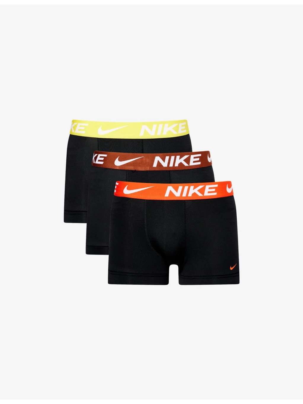 PRODUCT DETAILS - Nike pack of three jersey trunks - 92% polyester, 8% elastane - Mid-rise, branded elasticated waistband, supportive pouch at centre front - Machine wash cold - Model is 6ft 2in/1.88m and wears a size medium - Lightweight, stretchy - For hygiene reasons, we are unable to exchange or refund this product, unless faulty. Ref: R04402653