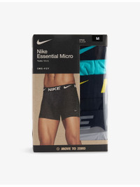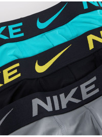 PRODUCT DETAILS - Nike stretch-woven trunks - 92% polyester, 8% elastane - Regular fit, DRI-FIT technology, mid-rise, elasticated branded waistband, assorted design, breathable, wide hems, flat seams, pack of three - Machine wash at 30°C - Model is 6ft 2in/1.88m and wears a size medium - Lightweight, stretchy - For hygiene reasons, we are unable to exchange or refund this product, unless faulty. Ref: R04402644
