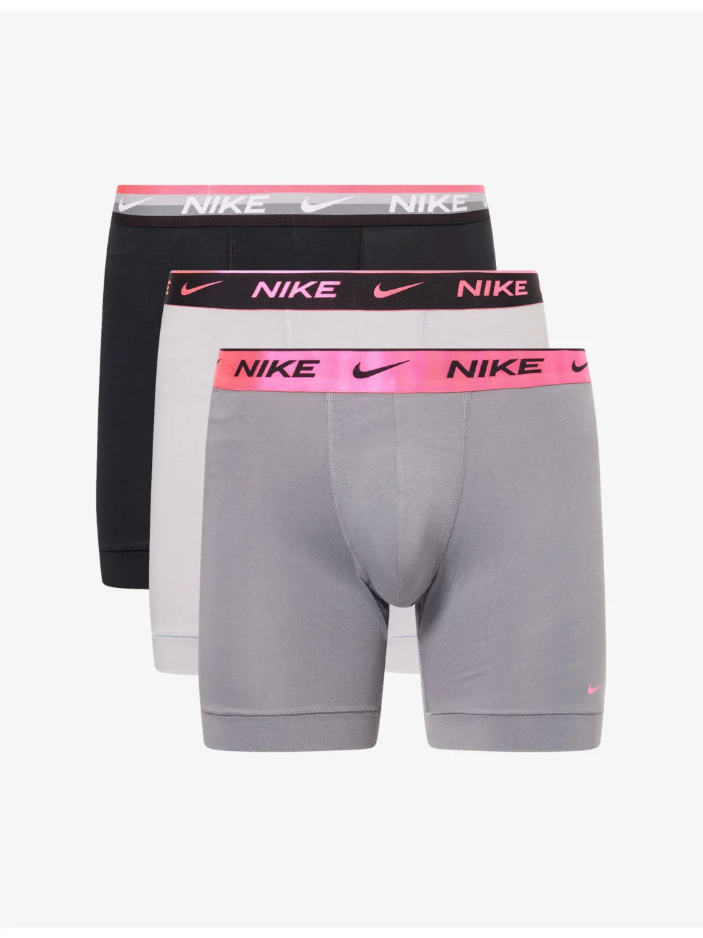 PRODUCT DETAILS - Nike pack of three stretch-cotton boxer briefs - 95% cotton, 5% elastane - Mid-rise, contrast branded elasticated waistband, central supportive pouch, monogram print at front, assorted colours, DRI-FIT technology - Machine wash at 30°C - Model is 6ft 2in/1.88m and wears a size medium - Lightweight, stretchy - For hygiene reasons, we are unable to exchange or refund this product, unless faulty. Ref: R04482672