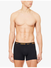 PRODUCT DETAILS - Nike pack of three stretch-cotton trunks shorty - 95% cotton, 5% elastane - Mid-rise, contrast branded elasticated waistband, central supportive pouch, monogram print at front, assorted colours, DRI-FIT technology - Machine wash at 30°C - Model is 6ft 2in/1.88m and wears a size medium - Lightweight, stretchy - For hygiene reasons, we are unable to exchange or refund this product, unless faulty. Ref: R04482656