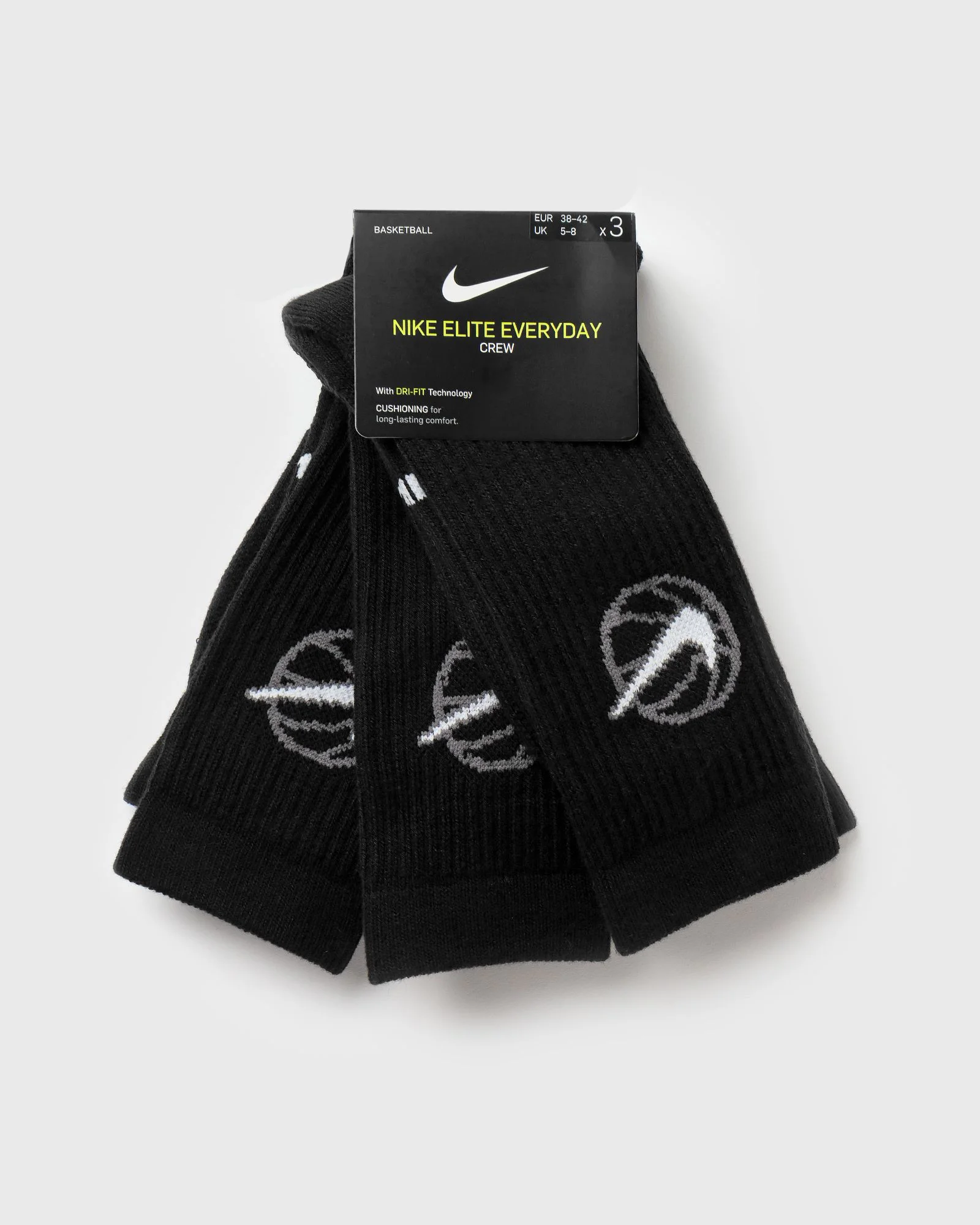 Give your best with the Nike Crew Socks. They're made of soft, stretchy material and designed for everyday wear. They are durable, breathable and extra comfortable. Article number: DA2123-010 Gender: men,women Color: black/white Material: Full: 100% Synthetic/Textile