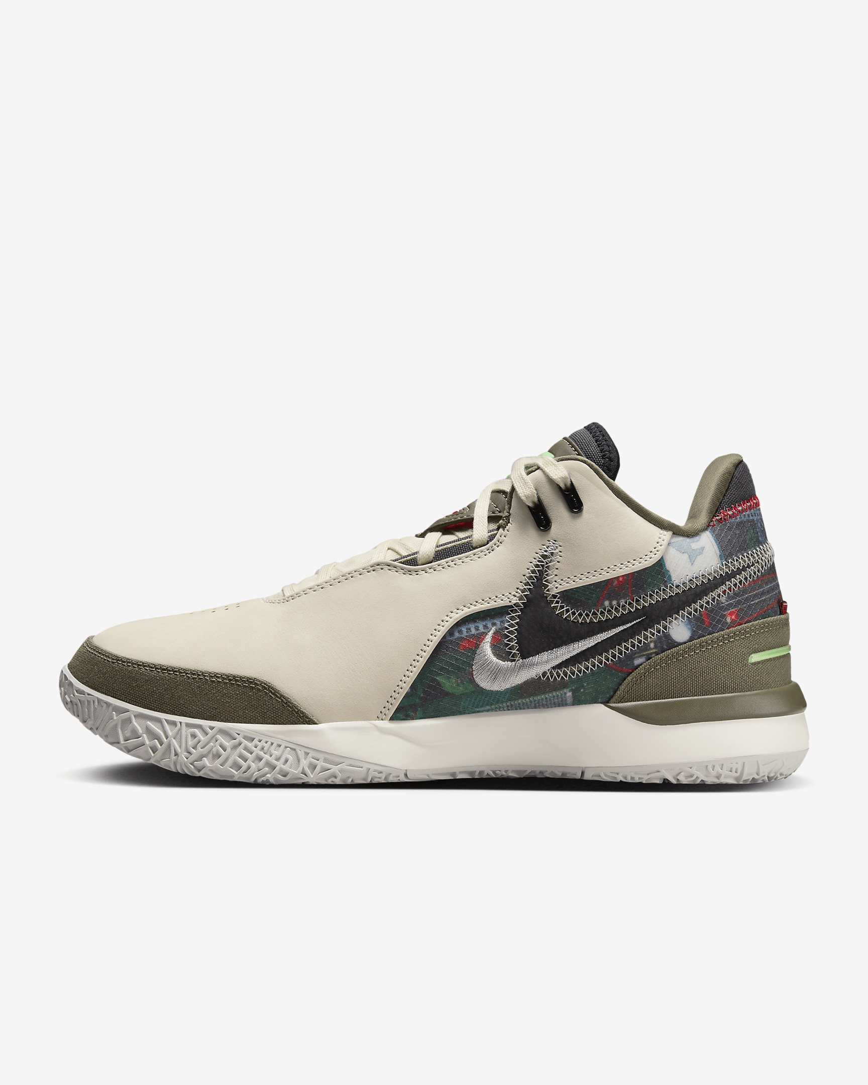 LeBron and FaZe Clan team up to bring you a collection rooted in sport, gaming and the culture. Whether you’re a dunk contest-like leaper or a below-the-rim wonder roaming the baseline, feel fast, low to the court and assured in the LeBron NXXT Gen. We specifically tailored it to meet the demands of today’s fast-paced game, so that you can stay ahead of the opposition with your speed in all directions. Product Details - Alternate colors on left shoe and right shoe - Graphic sublimation on insole - Shown: Light Cream/Medium Olive/Metallic Silver/Black - Style: HF0715-200