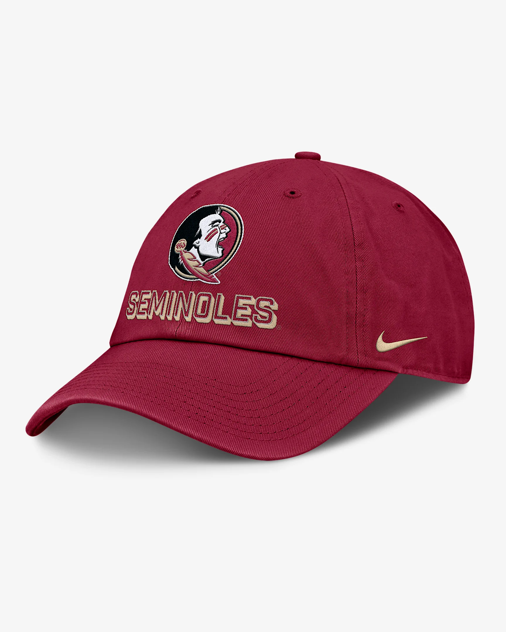 With breathable twill fabric and team embroidery, this On-Field Club Gameday Hat is ready to help you cheer on Florida State. Its adjustable buckle closure provides a customizable fit that helps keep you comfortable while enjoying the action at the stadium. Product Details - 6-panel design - Embroidered eyelets - 100% organic cotton - Hand wash - Imported - Shown: Garnet - Style: NC0169XFTN-MBJ