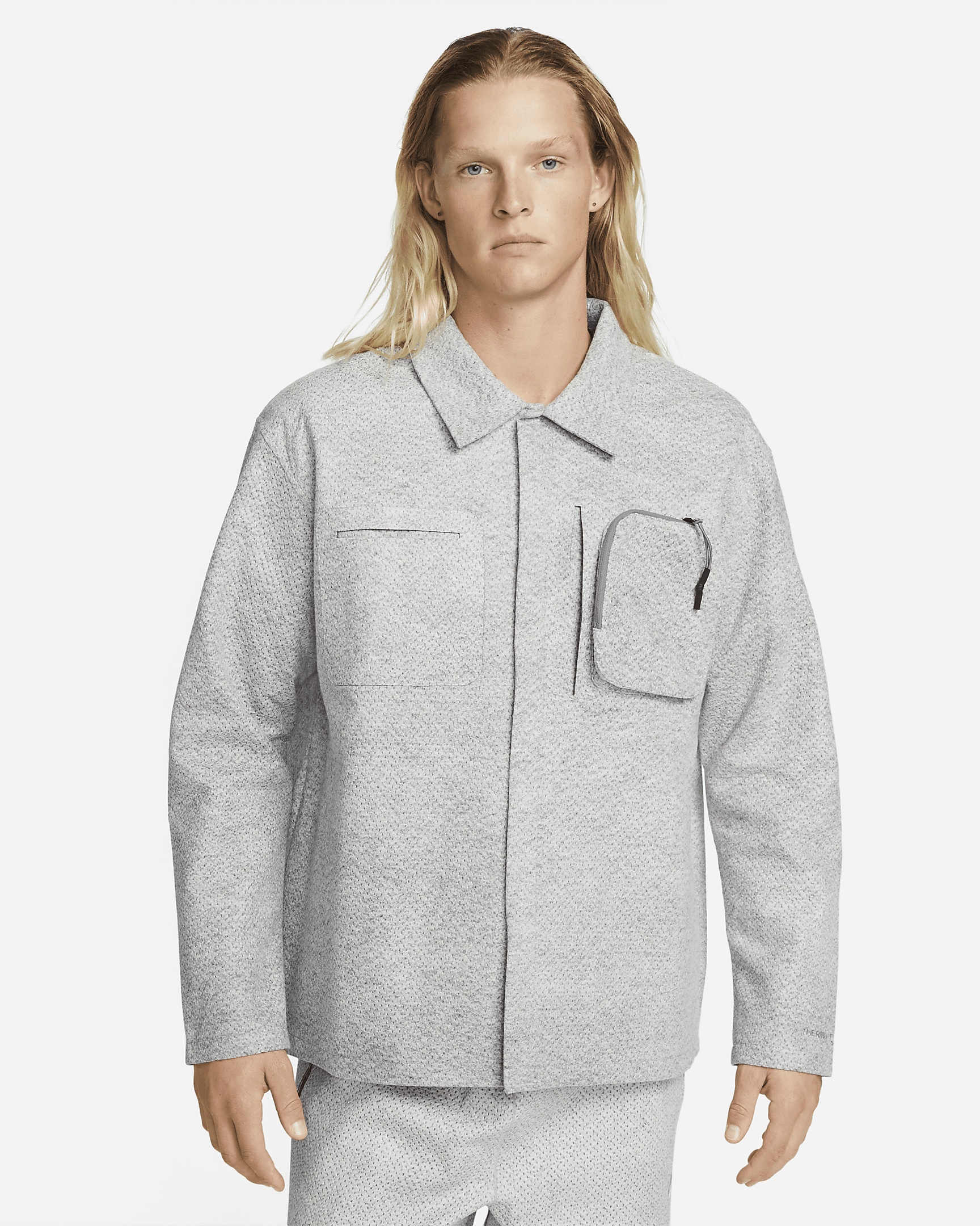 Inspired by the rugged look of classic workwear, this shirt-jacket from our Tech Pack collection was crafted with our innovative Nike Forward material. It brings you the all the function you'll need to tackle the big job while offering cozy warmth and lightweight comfort. More Benefits - Designed with plenty of extra space through the shoulders, chest and body for easy movement and layering. - Laser cut, zippered and bonded front utility chest pockets give you secure spots to store your essentials. Product Details - Slip-in side pockets - Embroidered Nike branding at sleeve, cuff and hem - 100% polyester - Machine wash - Imported - Shown: Smoke Grey/Heather/Light Smoke Grey/Cool Grey - Style: DV9992-084 SIZE & FIT Model is wearing size M and is 6′3″191cm Oversized fit: exaggerated and spacious