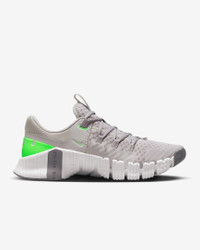 When your workouts wade into the nitty gritty, the Nike Free Metcon 5 can meet you in the depths, help you dig deep to find that final ounce of force and come out of the other side on a high. It matches style with substance, forefoot flexibility with backend stability, perfect for flying through a cardio day or enhancing your agility. A revamped upper offers easier entry with a collar made just for your ankle. More Benefits - Molded heel clip offers support. - Webbing eyelets help give you a snug, secure fit while also flexing with each step. - Rubber tread in high-wear areas gives you durable traction. Product Details - Not intended for use as Personal Protective Equipment (PPE) - Shown: Light Iron Ore/Phantom/Flat Pewter/Green Strike - Style: DV3949-002