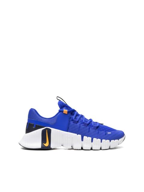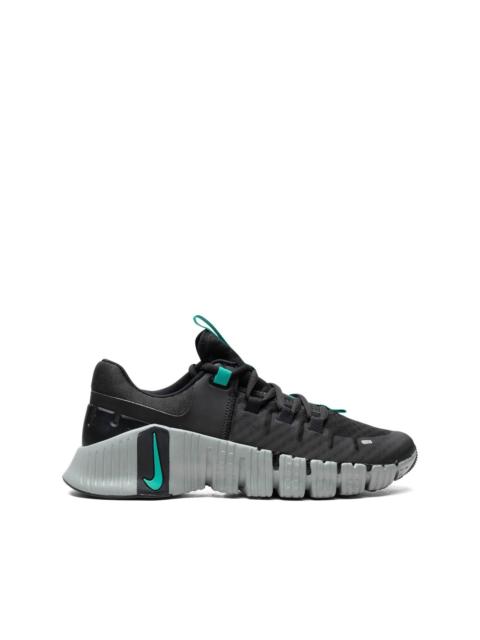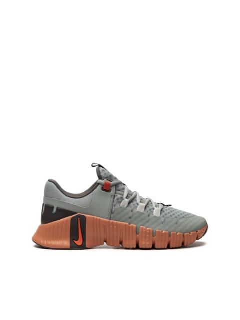 Free Metcon 5 "Light Iron" sneakers Nike's Free Metcon 5 sneakers maximise performance thanks to a focus on flexibility and stability through the Nike Free technology in the forefoot, a wide heel, internal webbing, foam cushioning and a firm rubber outsole. Rendered in a grey colourway with lime-green accents, they feature a breathable and lightweight upper, with a sock-like fit and a foam collar providing support. Highlights - Light grey/neon green - Round toe - Front lace-up fastening - Logo pull-tab - Padded ankle - Signature nike free technology - Rubber outsole - These styles are supplied by a premium and authenticated sneaker marketplace. stocking only the most sought-after footwear, they source and curate some of the most hard to find sneakers from around the world. Imported Composition Sole: Rubber 100% Outer: Fabric 100% Lining: Fabric 100%