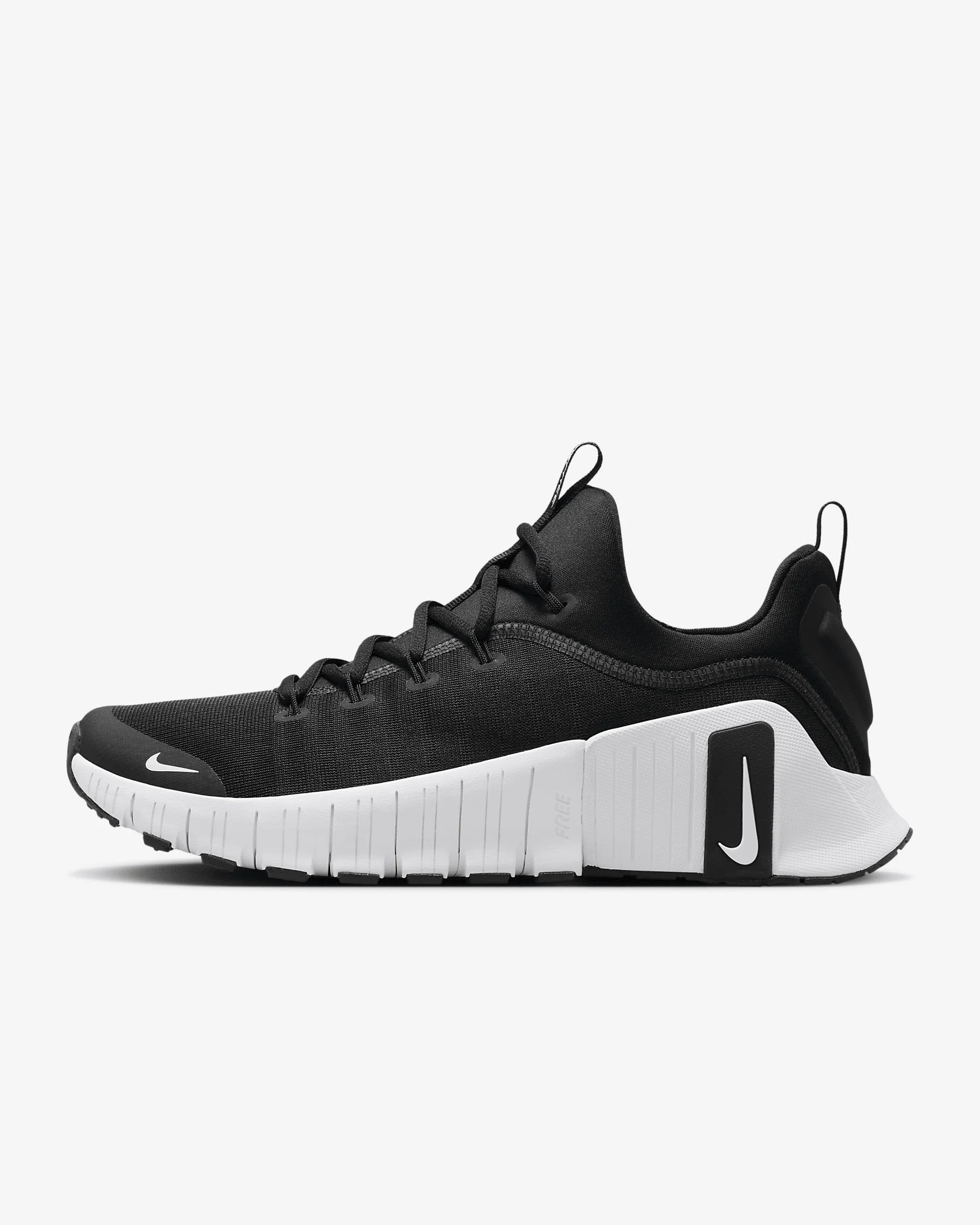 From power lifts to ladders, from grass blades to grainy platforms, from the turf to the track your workout has a certain purpose, a specific focus. The Free Metcon 6 supports every grunt, growl and “got it!” We added even more forefoot flexibility to our most adaptable trainer and reinforced the heel with extra foam. That means more freedom for dynamic movements during plyos and cardio classes, plus the stable base you need for weights. More Benefits - Multi-surface traction pattern is made for any workout surface and activity. - Comfortable inner sleeve increases ankle support and provides a more seamless fit. Product Details - Shown: Black/White - Style: FJ7127-001