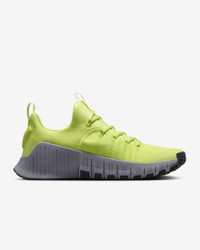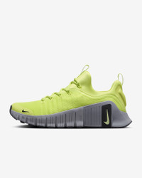 From power lifts to ladders, from grass blades to grainy platforms, from the turf to the track your workout has a certain purpose, a specific focus. The Free Metcon 6 supports every grunt, growl and “got it!” We added even more forefoot flexibility to our most adaptable trainer and reinforced the heel with extra foam. That means more freedom for dynamic movements during plyos and cardio classes, plus the stable base you need for weights. More Benefits - Multi-surface traction pattern is made for any workout surface and activity. - Comfortable inner sleeve increases ankle support and provides a more seamless fit. Product Details - Shown: Light Lemon Twist/Cement Grey/Black/Light Lemon Twist - Style: FJ7127-700