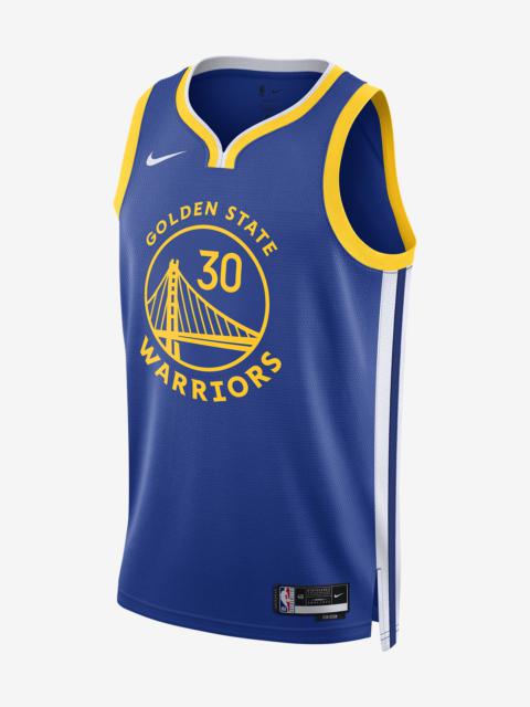 Every team has its true colors, an unmistakable identity that sets it apart from the rest of the league. Honoring a rich hoops heritage, this Golden State Warriors jersey is inspired by what the pros wear on the hardwood, from squad details to lightweight, sweat-wicking mesh. It helps keep you dry and cool on or off the court while you rep your favorite player and the game you love. Benefits - Nike Dri-FIT technology moves sweat away from your skin for quicker evaporation, helping you stay dry and comfortable. - Breathable mesh helps keep you cool on or off the court. Product Details - Twill player name and number - Heat-applied graphics - Jock tag at hem - 100% polyester - Machine wash - Imported - Shown: Rush Blue - Style: DN2005-404 SIZE & FIT Standard fit: easy and traditional If you typically wear men's styles, please select your usual size. If you typically wear women's styles, please size down.