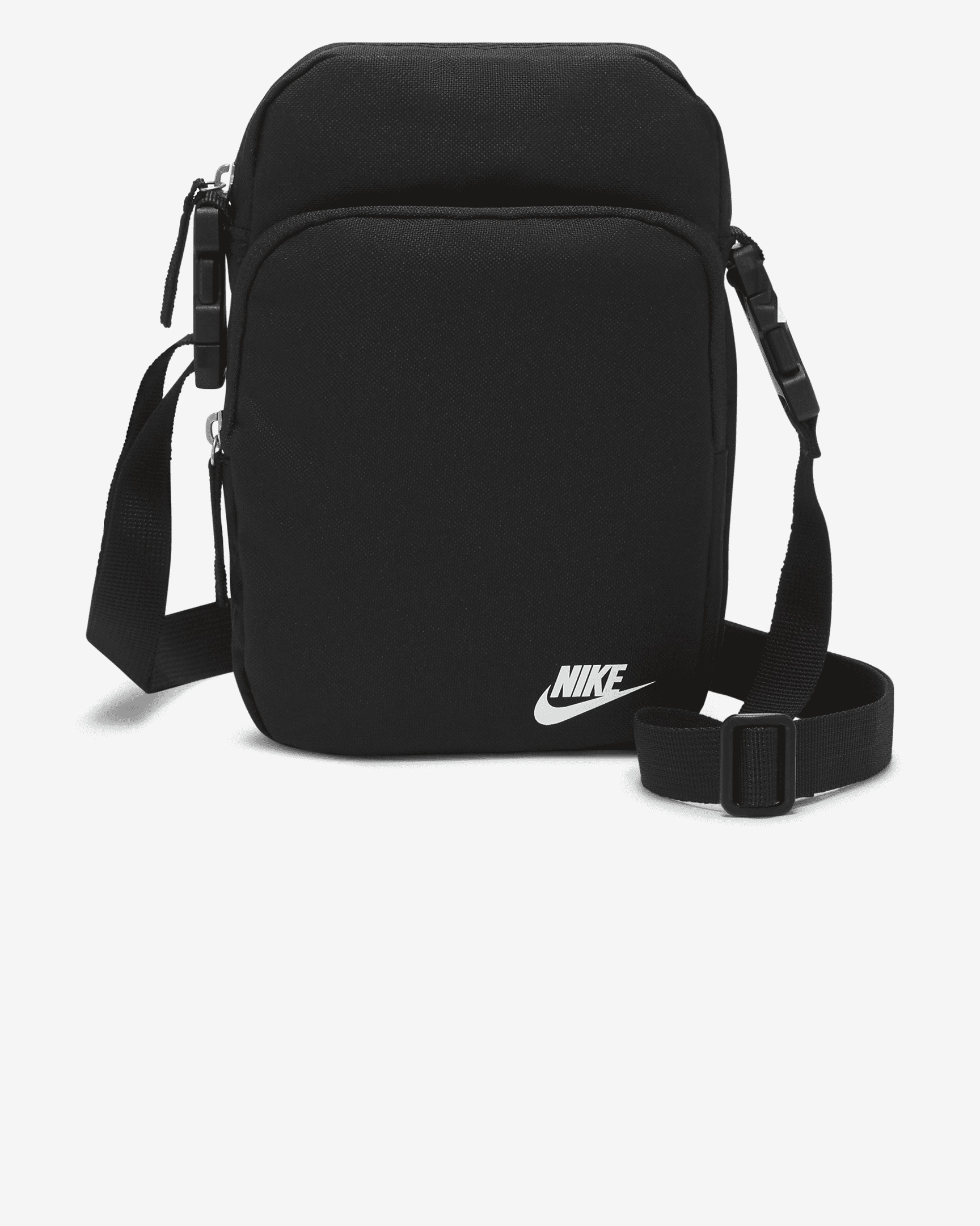 An alternative to the classic hip pack style, the Nike Heritage Crossbody bag offers hands-free storage in a design you wear across the chest. A Futura logo print and easy-to-adjust strap make it a smart pick for everyday use. The main storage pocket and accessories pocket help keep your gear organized. This product is made with at least 65% recycled polyester. Benefits - Zippered main pocket helps keep your bigger items organized and stored securely. - Zippered accessories pocket provides secure small-item storage. - Adjustable strap provides a personalized fit. Product Details - Dimensions: 9" H x 7" W x 3" D - 4 L - Body: 69% nylon/31% polyester. Lining: 100% polyester. - Spot clean - Imported - Shown: Black/Black/White - Style: DB0456-010
