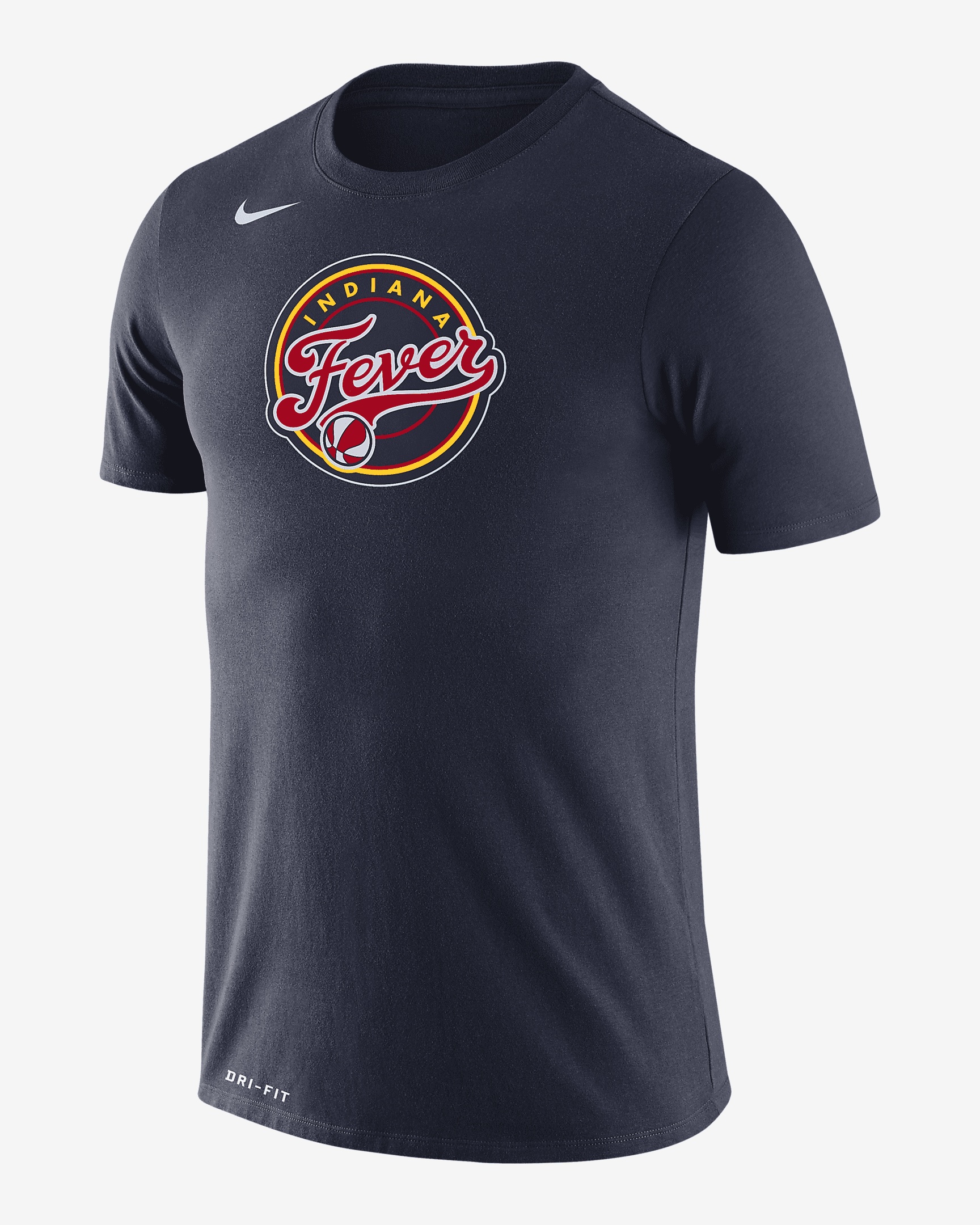 Rep your team in the Indiana Fever Logo Nike WNBA T-Shirt. It's made with soft, lightweight fabric and sweat-wicking technology. Benefits - Dri-FIT technology helps you stay dry and comfortable. - Blended knit fabric feels soft and lightweight. Product Details - Standard fit for a relaxed, easy feel - Ribbed neckband - Printed graphics - 57% cotton/43% polyester - Machine wash - Imported - Shown: College Navy - Style: DD3642-419 SIZE & FIT Standard fit: easy and traditional