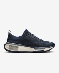 Maximum cushioning provides our most comfortable ride for everyday runs. Experience a breathable Flyknit upper and the robust platform of lightweight ZoomX foam that softens impact. Plus, the midsole of this model is wider and taller than the last for even more cushioned comfort. Benefits - Breathable Flyknit upper for a secure fit without bulk - High and wide ZoomX foam midsole cushions on impact - Waffle outsole for durable traction - Extra cushioning around contact points around the heel and tongue - What’s New? A wider and taller ZoomX foam midsole for maximum comfort and sleek all-around design updates. Product Details - Weight: Approx. 309g/ 10.9oz (Men's US 10) - Heel-to-toe drop: 9mm - Not intended for use as Personal Protective Equipment (PPE) - Shown: College Navy/Midnight Navy/Black/Metallic Silver - Style: DR2615-400