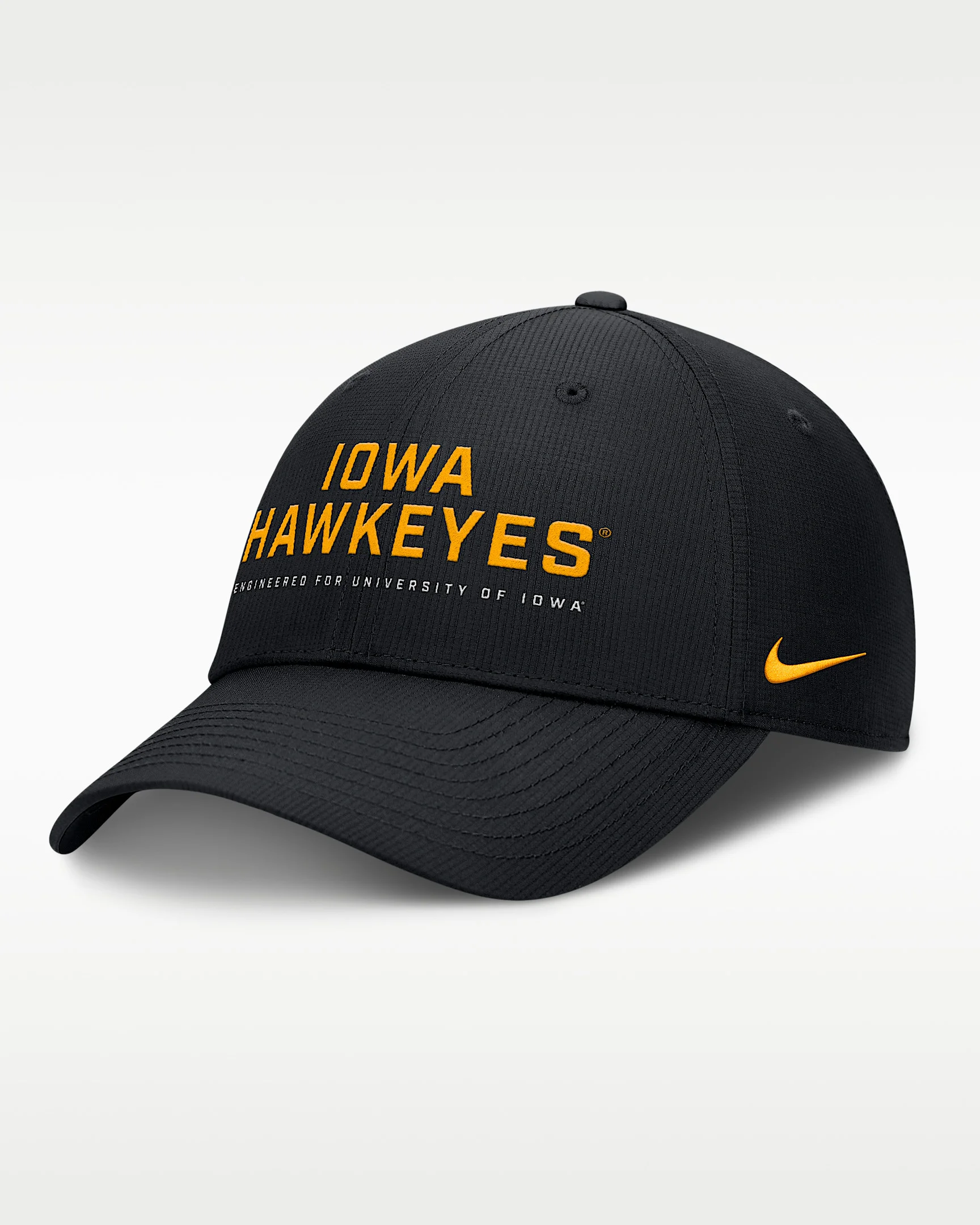 The On-Field Club Gameday Hat combines sweat-wicking technology with durable ripstop fabric for a consistently reliable feel and fit. Its embroidered Iowa details help you effortlessly show support for your favorite college. Benefits - Nike Dri-FIT technology moves sweat away from your skin for quicker evaporation, helping you stay dry and comfortable. - Hook-and-loop closure provides a customizable fit. Product Details - 6-panel design - Embroidered eyelets - 100% recycled polyester - Hand wash - Imported - Shown: Black - Style: NC0800AIA-CDY